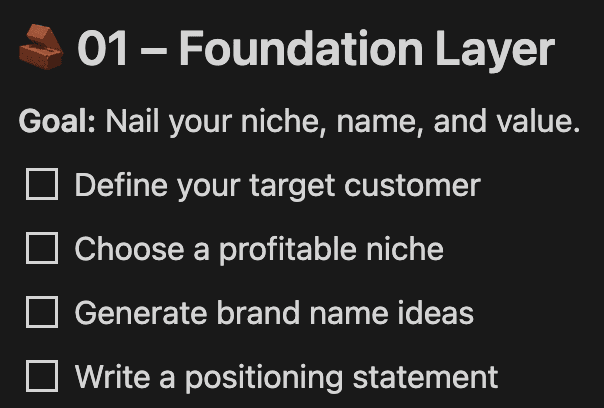 Identify a profitable niche, name your brand, and craft a clear positioning statement so you never second-guess what you’re building or who it’s for. It sets you up with total clarity before you ever start creating, saving you time and unlocking focused momentum.