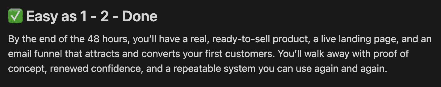 The OS is designed to help you launch in 48 hours or less. If you follow the system and stay focused, you can go from idea to income in a single weekend.